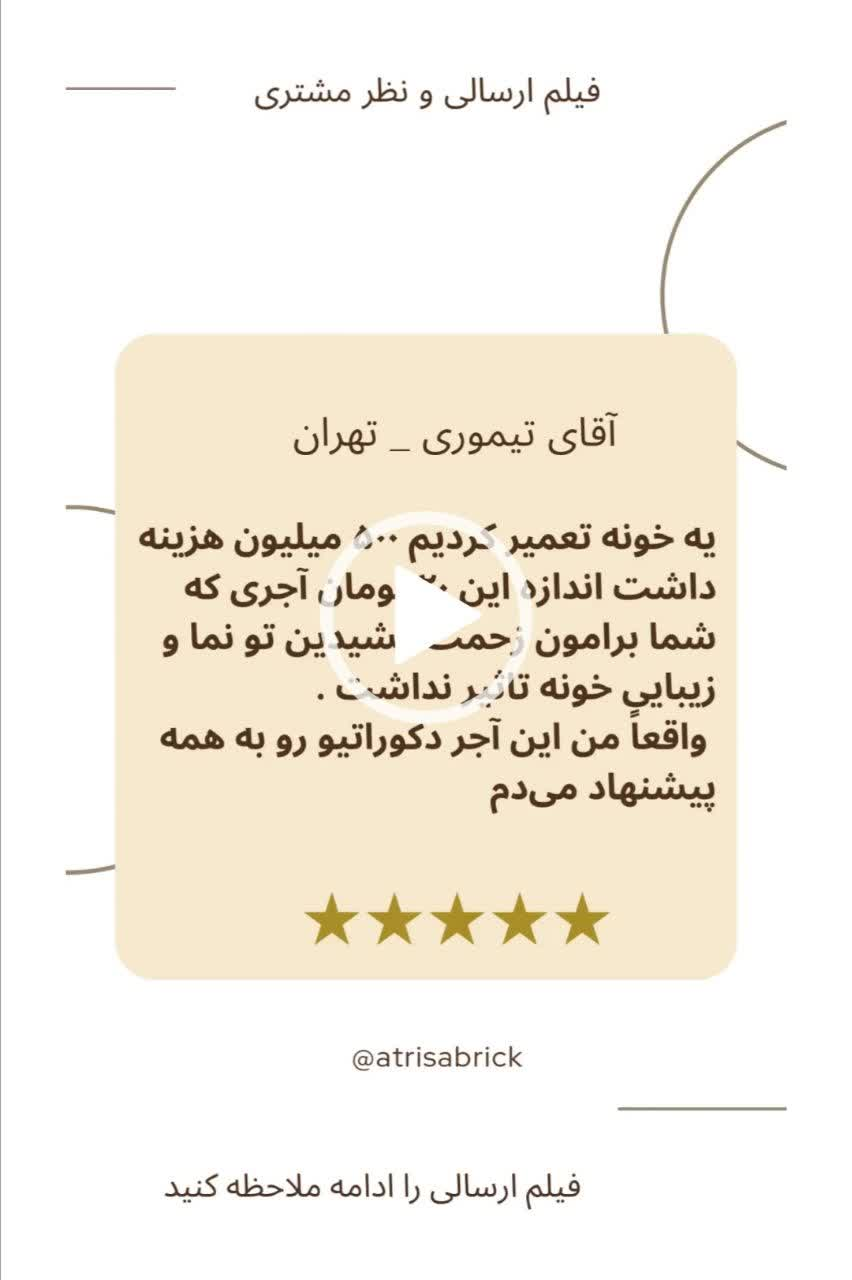 .4- آجرهای دکوراتیو آتریسا ، قابل شستشو هستند و به راحتی با یک تکه پارچه نمدار و کمی مایع شوینده تمیز می شوند.