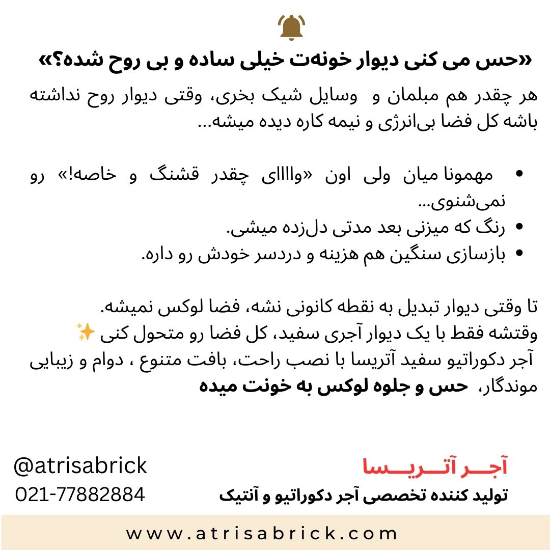 آجر دکوراتیو آتریسا انتخابی مطمئن برای کسانی است که به زیبایی نهایی و دوام کار اهمیت میدهند. این آجرها با کیفیت کارخانهای تولید شده و پس از اجرا ظاهر خود را حفظ میکنند.