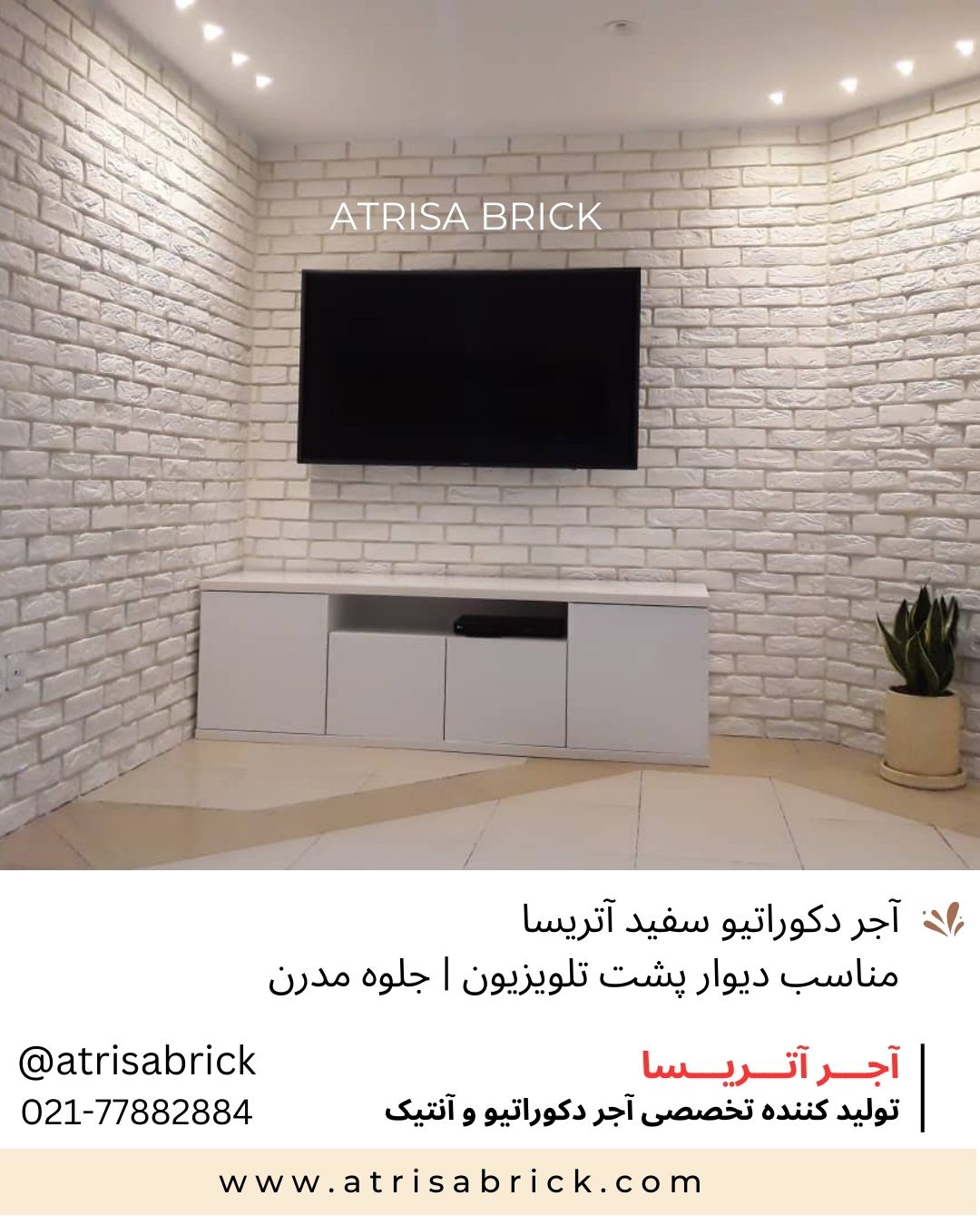 آجر نما دکوراتیو (هلندی / آنتیک) سفید آتریسا | مخصوص دیوار پشت تلویزیون و فضای داخلی