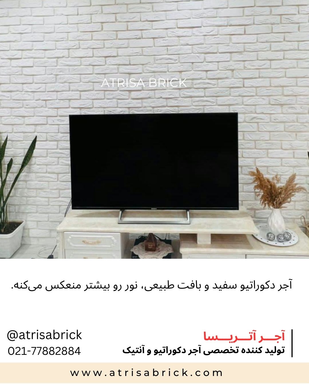 آجر نما دکوراتیو (هلندی / آنتیک) سفید آتریسا | دیوار پشت تلویزیون و اتاق نشیمن-زیبایی ماندگار