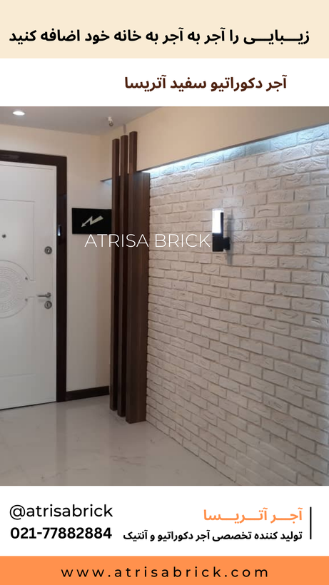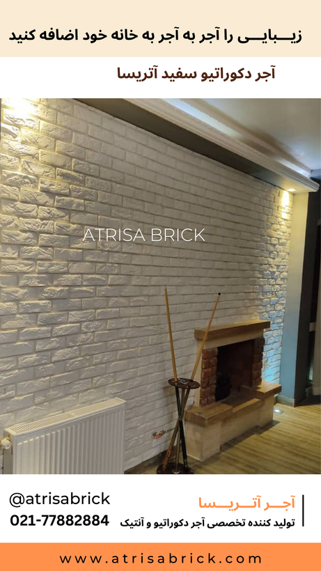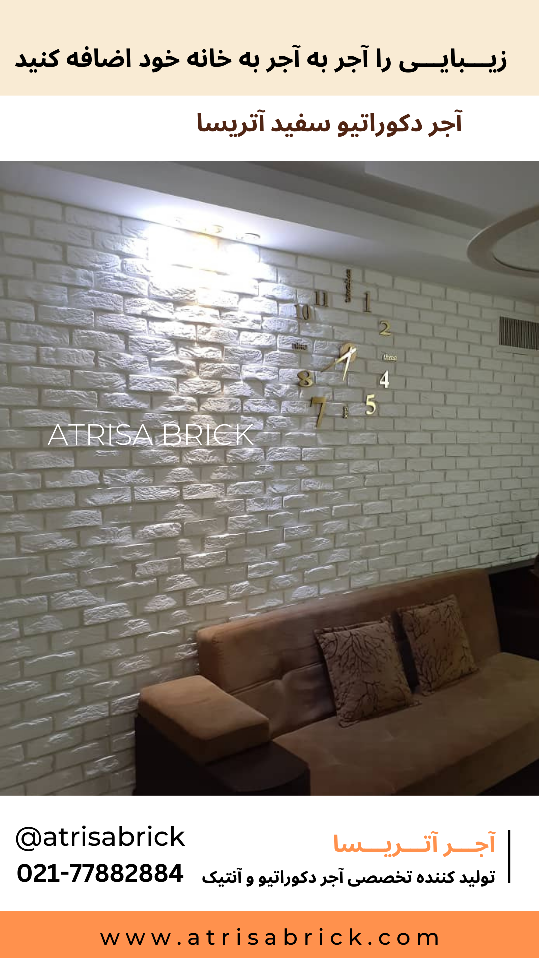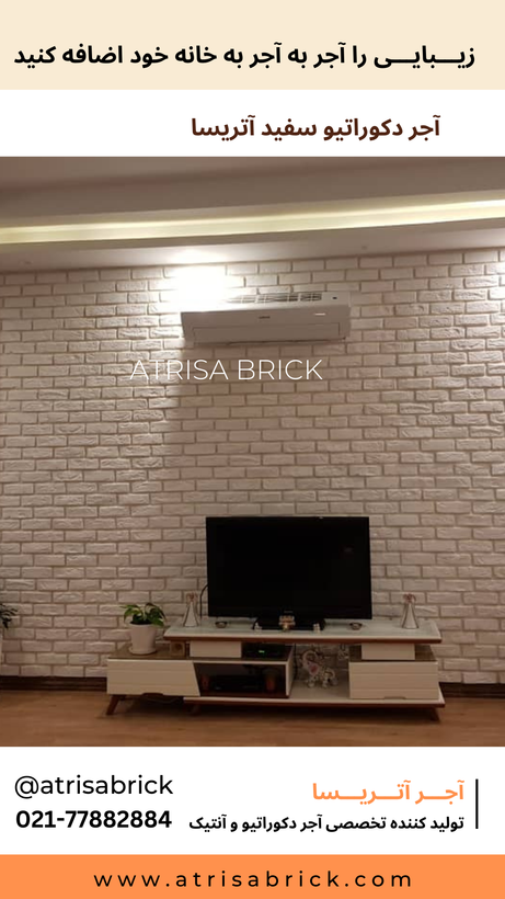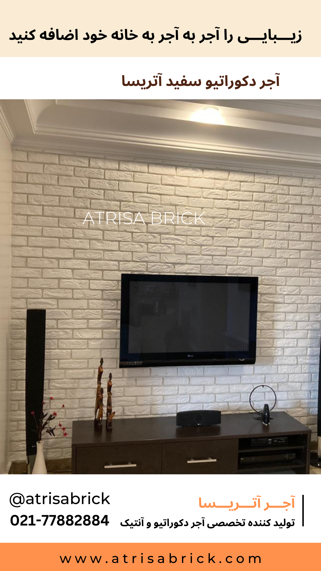 آجر نما دکوراتیو (هلندی / آنتیک) سفید آتریسا | دیزاین دیوار پشت تلویزیون و اتاق نشیمن-زیبا و ماندگار